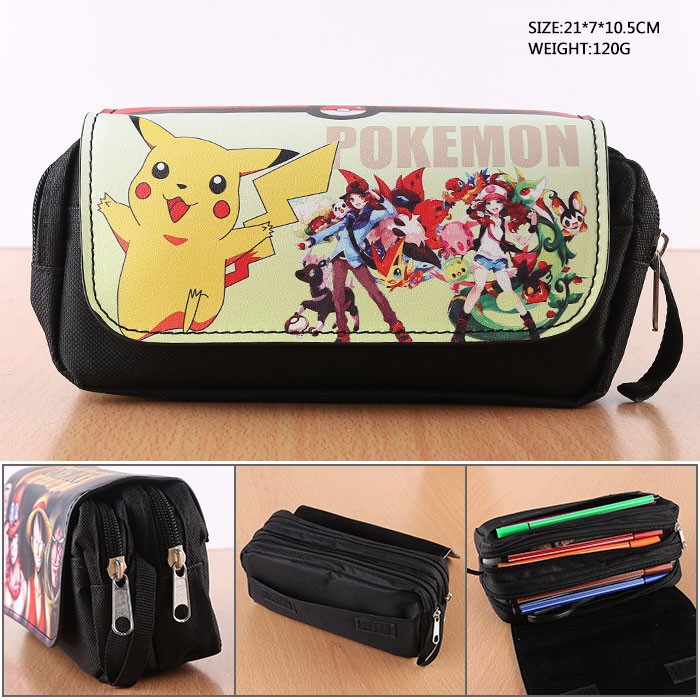 宠物小精灵PU尼龙多功能双层拉链翻盖钱包笔袋A款
