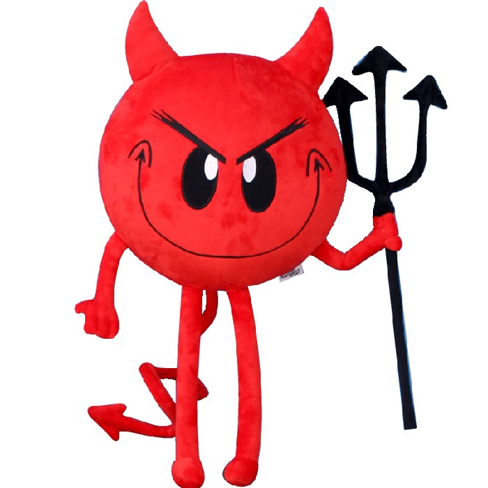 正版emoji滑稽脸表情抱枕毛绒小恶魔中号带叉42X24CM