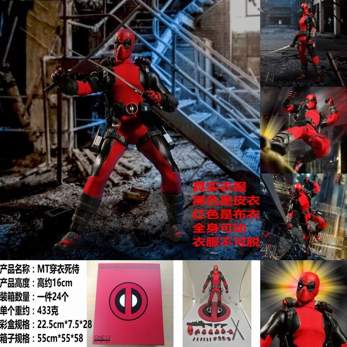 MT穿衣死侍真实布衣服黑色可动 衣服不可脱盒装公仔手办高约16CM