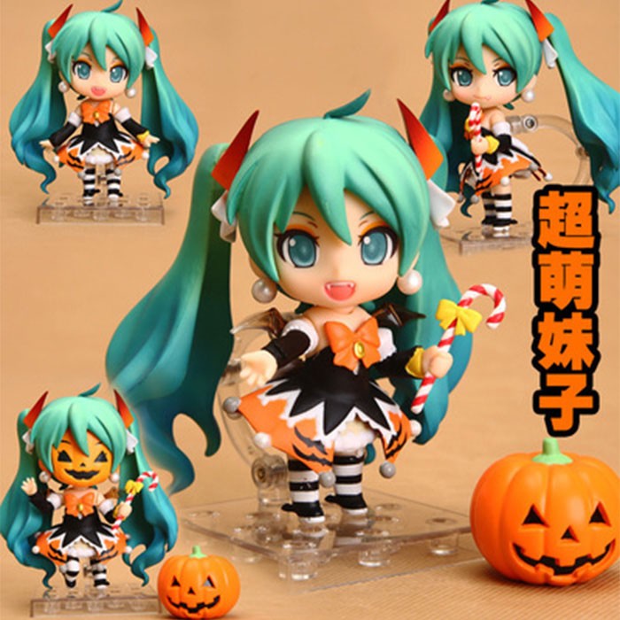 初音未来C014南瓜初音手办Q版换脸粘土汽车摆件万圣节盒装公仔手办高约10CM
