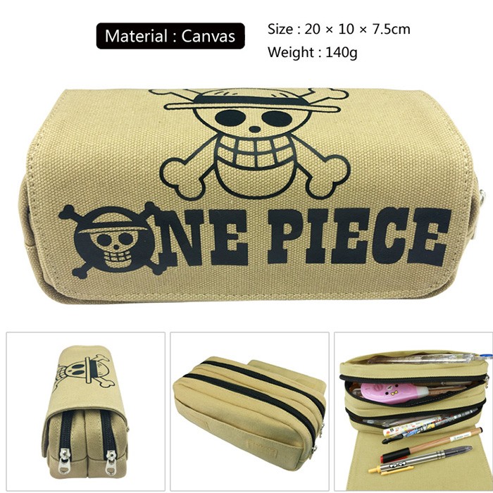 海贼王路飞骷髅头帆布多功能双层拉链翻盖钱包笔袋