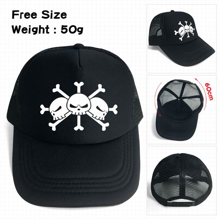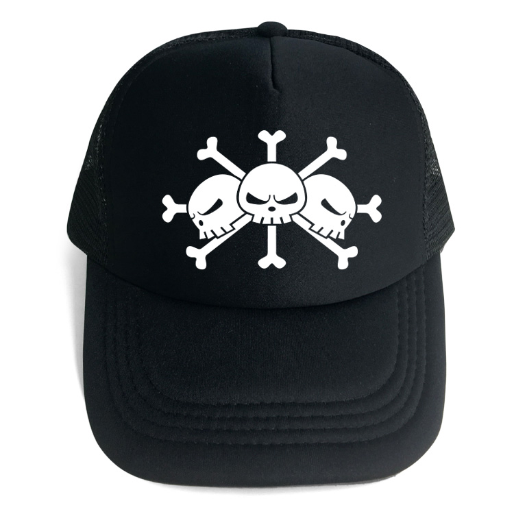 海贼王黑胡子骷髅标志丝印潮流网格帽子