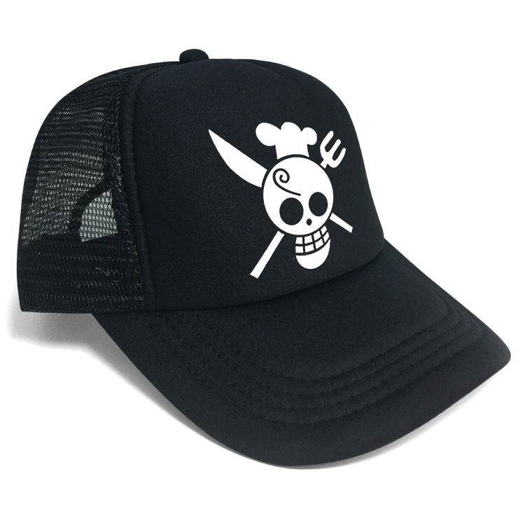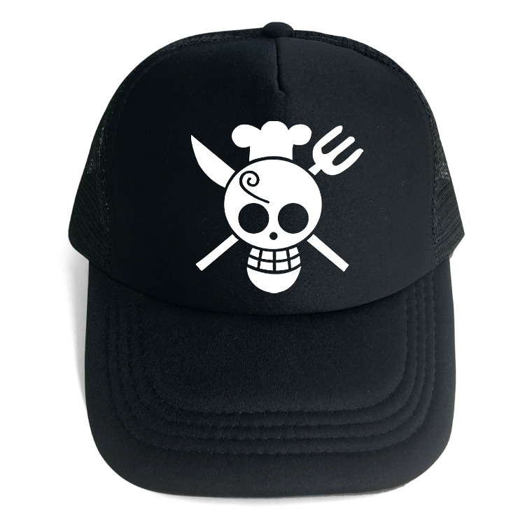 海贼王山治香吉士骷髅标志丝印潮流网格帽子
