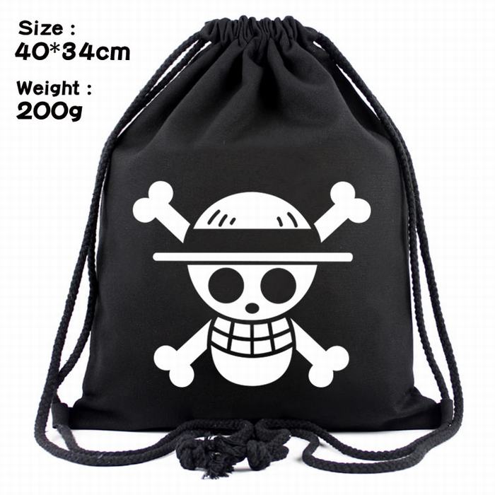 海贼王路飞骷髅标志丝印帆布束口背包