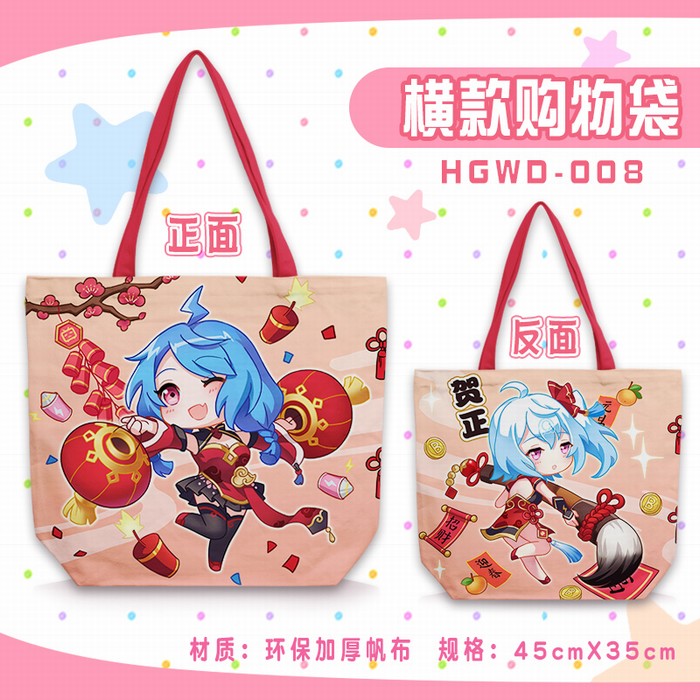 HGWD008-bilibili 动漫单肩帆布拉链购物袋 45X35CM