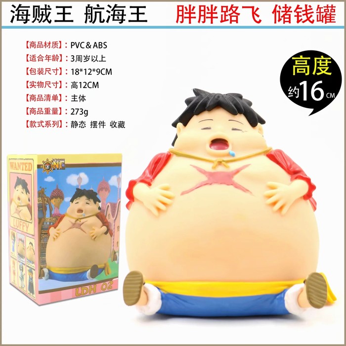 海贼王 航海王 胖胖路飞存钱罐盒装手办摆件模型 15CM 一箱42个 12X9X18CM 265G