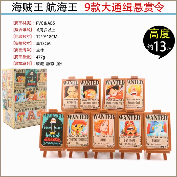 海贼王航海王 9款通缉悬赏令相框 9款一套 一盒配一大一小2个 盒装摆件9cm-13CM 一箱25套