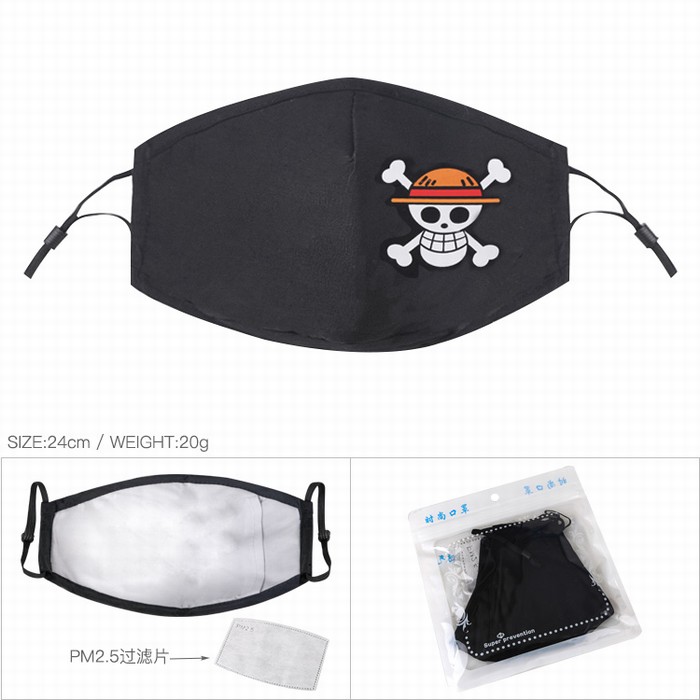 海贼王 骷髅头 黑色彩印纯棉口罩 PM2.5过滤片