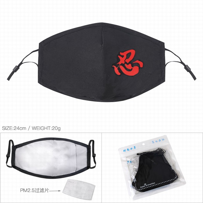 火影忍者 忍字款 黑色彩印纯棉口罩 PM2.5过滤片