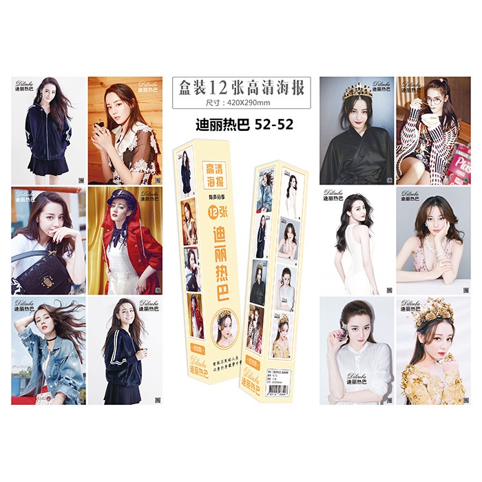 迪丽热巴明星周边-12张一盒-盒装防水高清压纹海报-5盒起批-封面随机-42X29CM