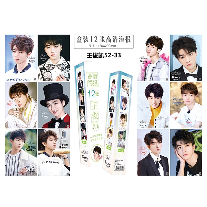 王俊凯明星周边-12张一盒-盒装防水高清压纹海报-5盒起批-封面随机-42X29CM