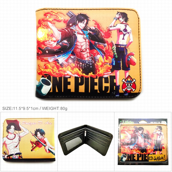 HK-361-海贼王-火拳艾斯短款彩图二折钱包11.5X9.5X1CM 80G
