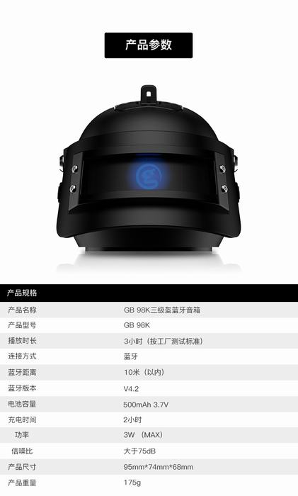 正版绝地求生吃鸡游戏三级头98K.蓝牙音响电池容量500毫安9.5X7.4X6.8CM