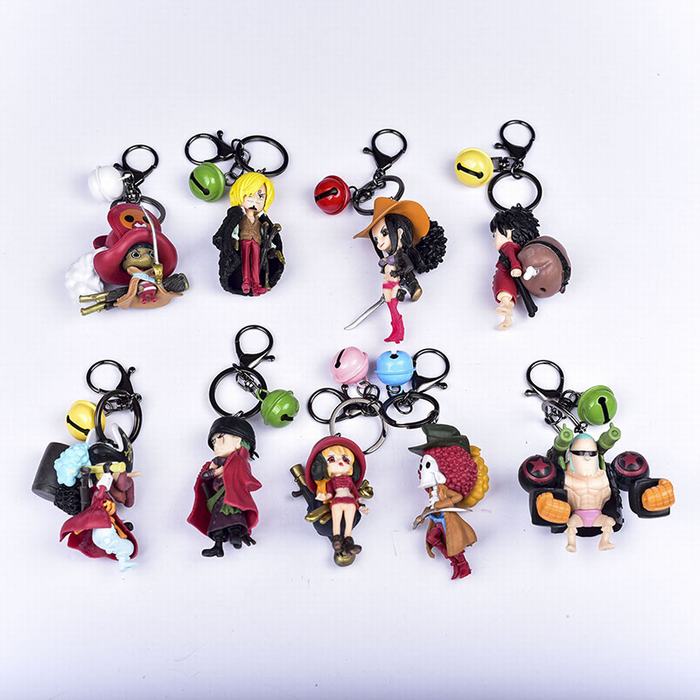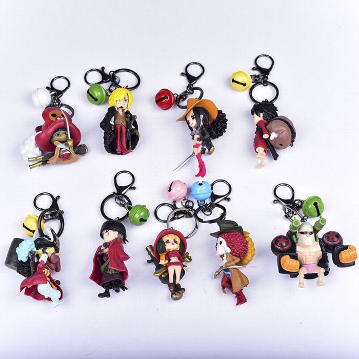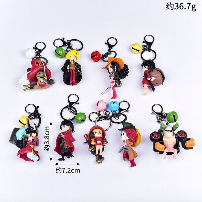 海贼王航海王9款一套红衣海贼带铃铛小手办公仔钥匙扣挂件
