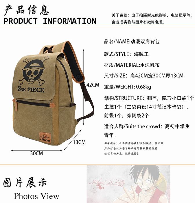 海贼王航海王动漫 水洗帆布双肩包背包书包 30X13X42CM