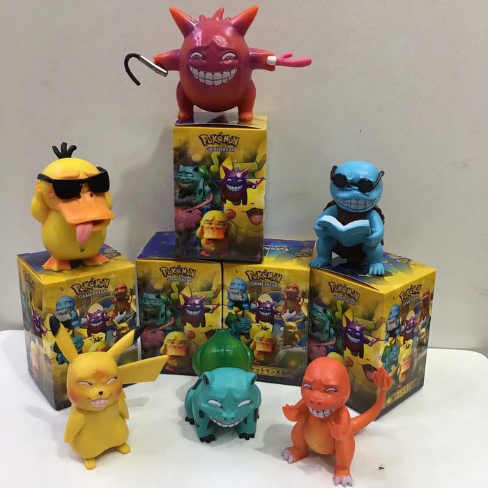 宠物小精灵 神奇宝贝猥琐色色表情Q版 6款一套 头部可360度转动 盒装手办摆件模型 盒蛋5-7CM 每箱100个