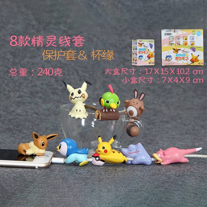 宠物小精灵 8款一套 精灵线套保护套 杯缘 盒装手办摆件模型 7X4X9CM 240G