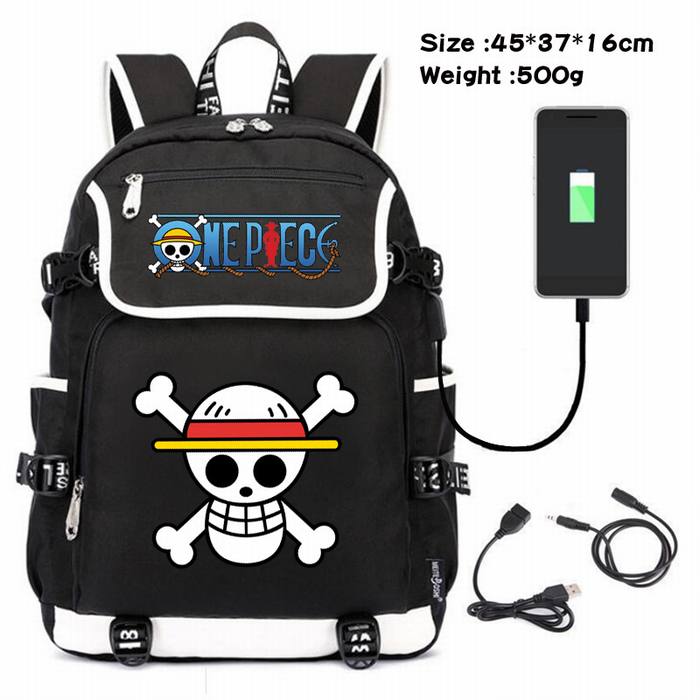 海贼王 航海王-118 动漫600D防水帆布双肩包USB充电数据线背包