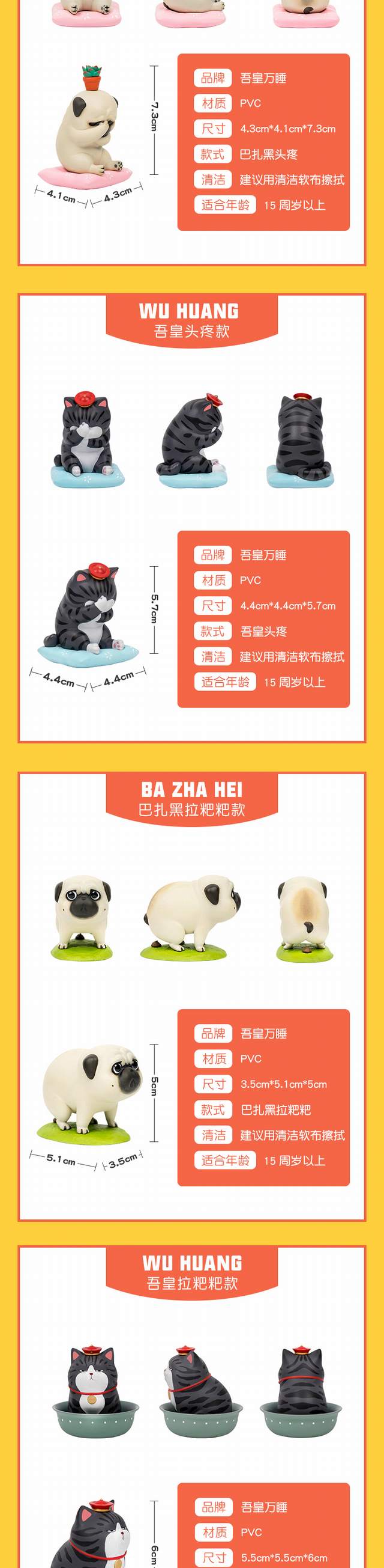 吾皇万睡系列 巴扎黑公仔猫咪 盲盒 盒装手办摆件模型 8只一盒 一箱8盒