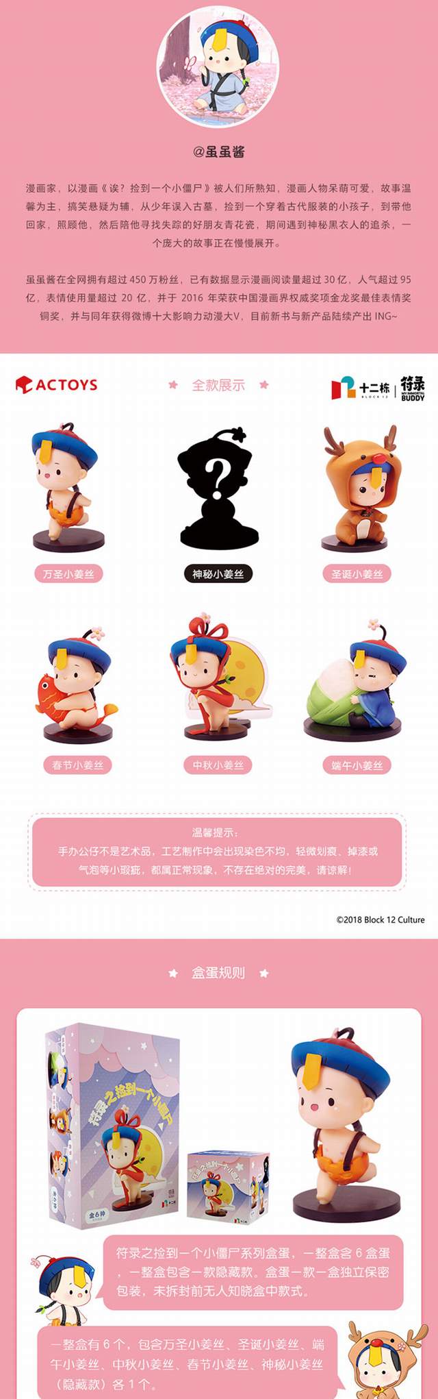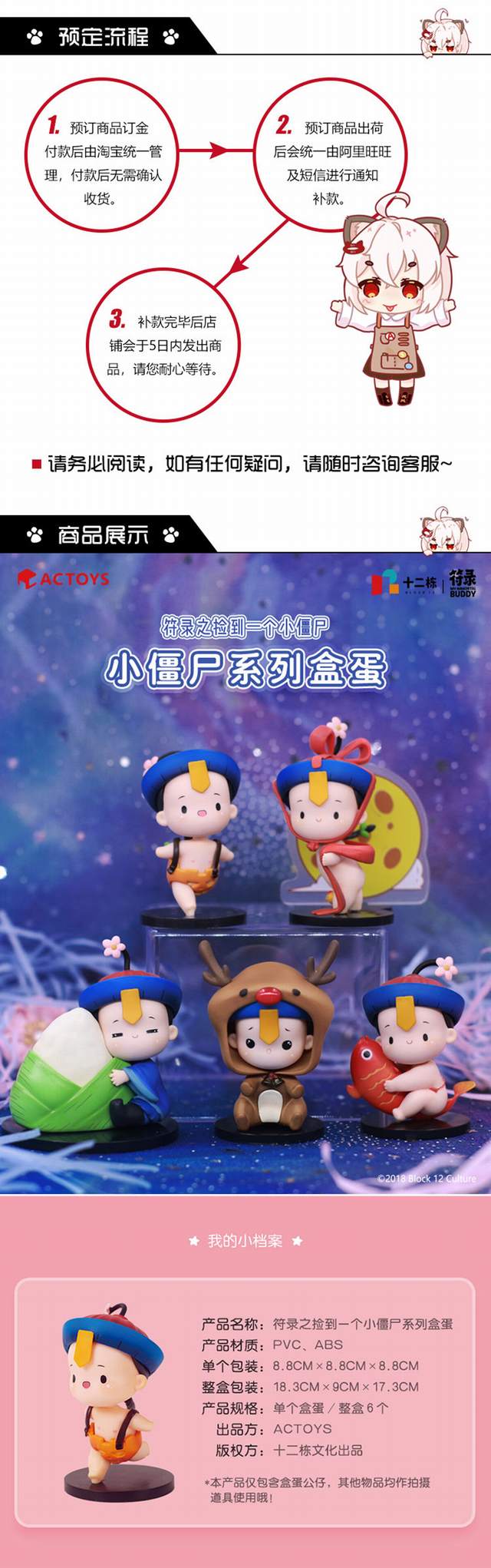 符录之捡到一个小僵尸系列盒蛋 小僵尸盲盒 盒装手办摆件模型 6只一盒 一箱12盒