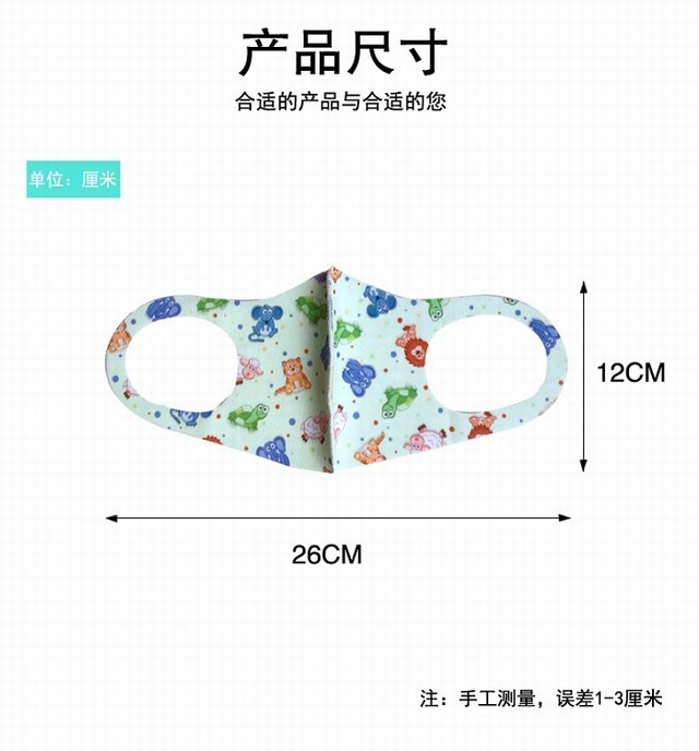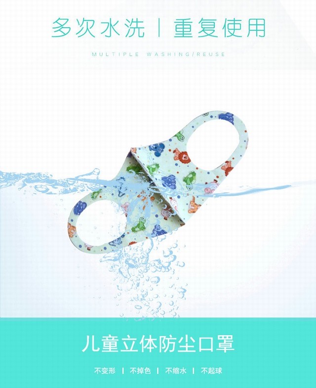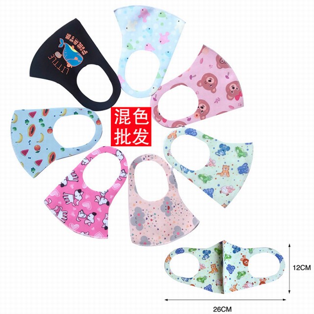 卡通儿童印花立体防尘透气冰丝棉可水洗口罩 颜色款式随机 10个起批