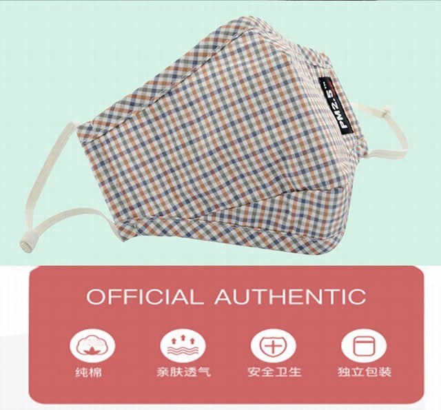 咖啡色格子棉布防尘防雾霾防护带呼吸阀口罩 适合6-12岁儿童 可插PM2.5过滤片 3个起批
