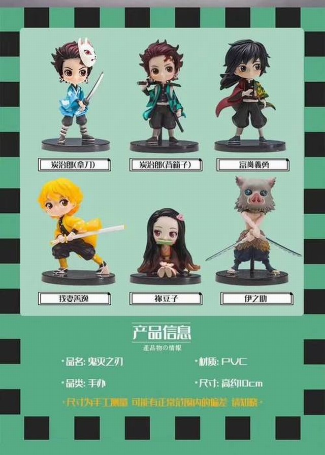 鬼灭之刃 炭治郎,富冈义勇,伊之助 3款一套 袋装手办摆件模型 约10CM 一箱100套