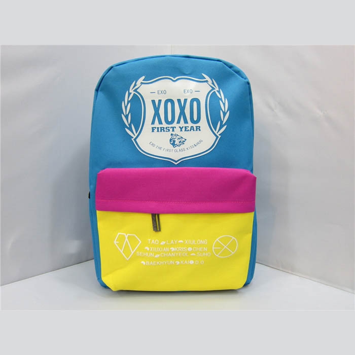 EXO XOXO标志休闲天蓝色尼龙双肩背包