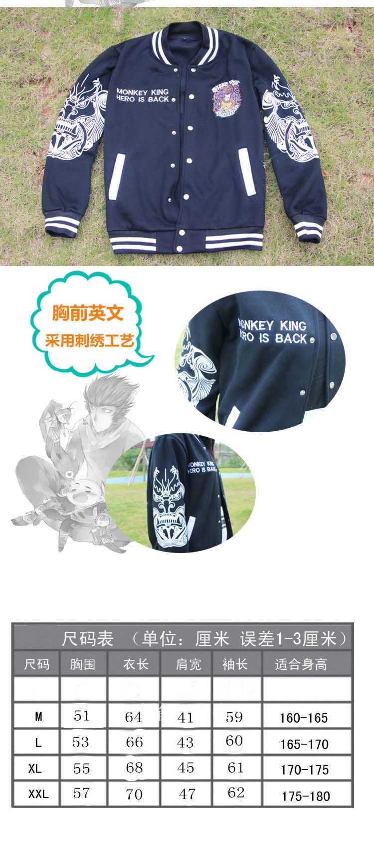大圣归来棒球黑色拉链外套M L XL XXL