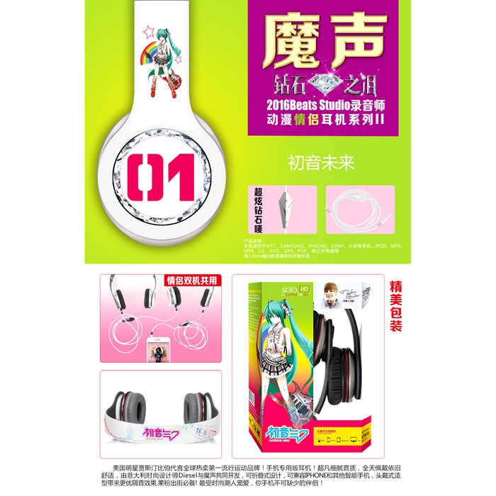 初音未来钻石之泪带麦带式耳机白色款