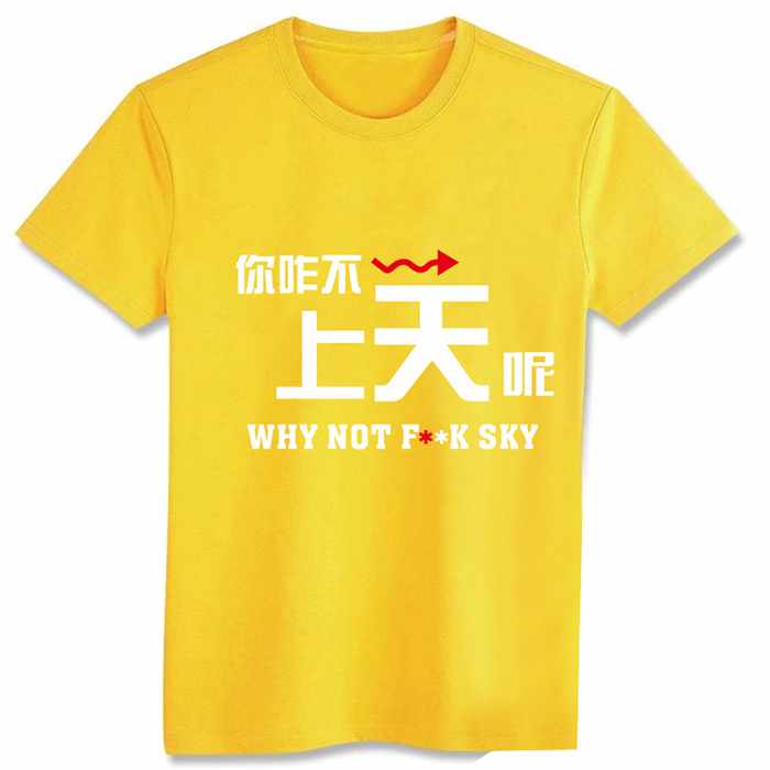 老司机咋不上天呢标志纯棉短袖圆领T恤浅黄色M L XL XXL XXXL