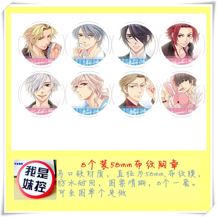 兄弟恋人8款一套圆形布纹胸针胸章58mm