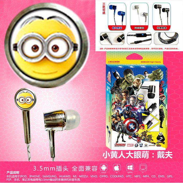 神偷奶爸小黄人大眼萌:戴夫蛇皮带唛入耳式耳机5个起批