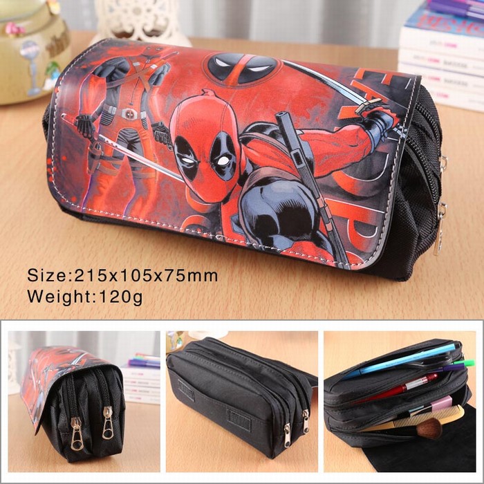 死侍PU尼龙多功能双层拉链翻盖钱包笔袋