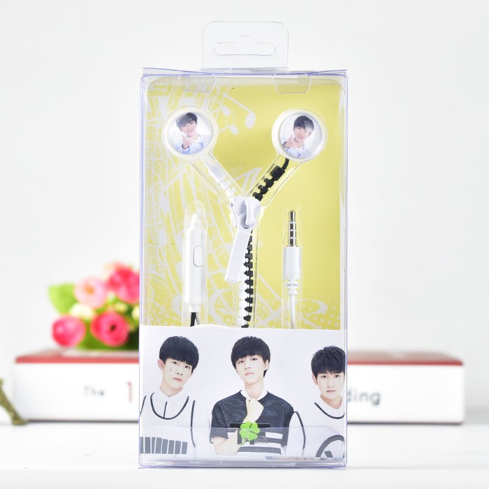 王俊凯明星周边双色拉链线可语音入耳式耳机