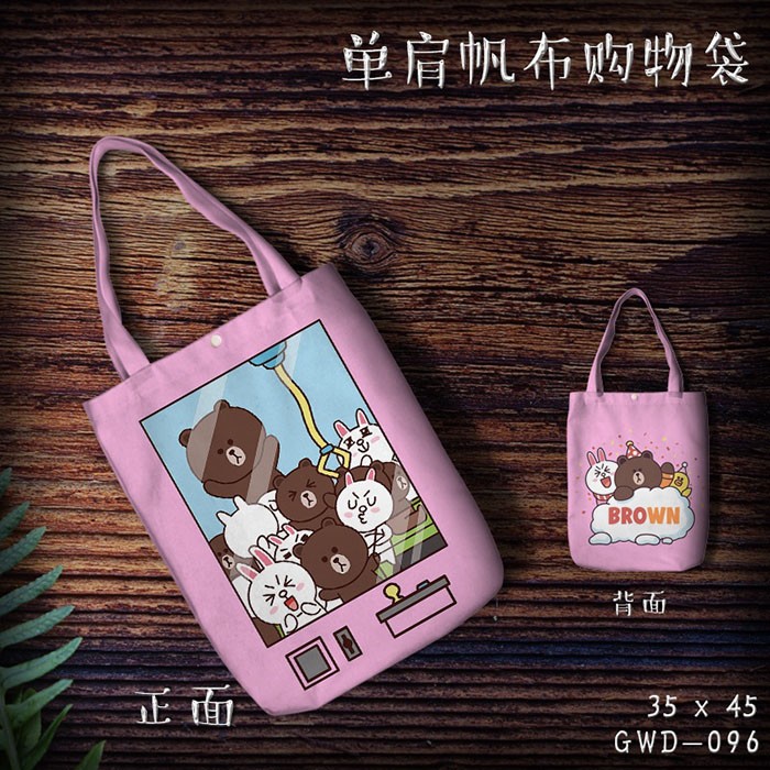 GWD096-布朗熊动漫单肩帆布购物袋
