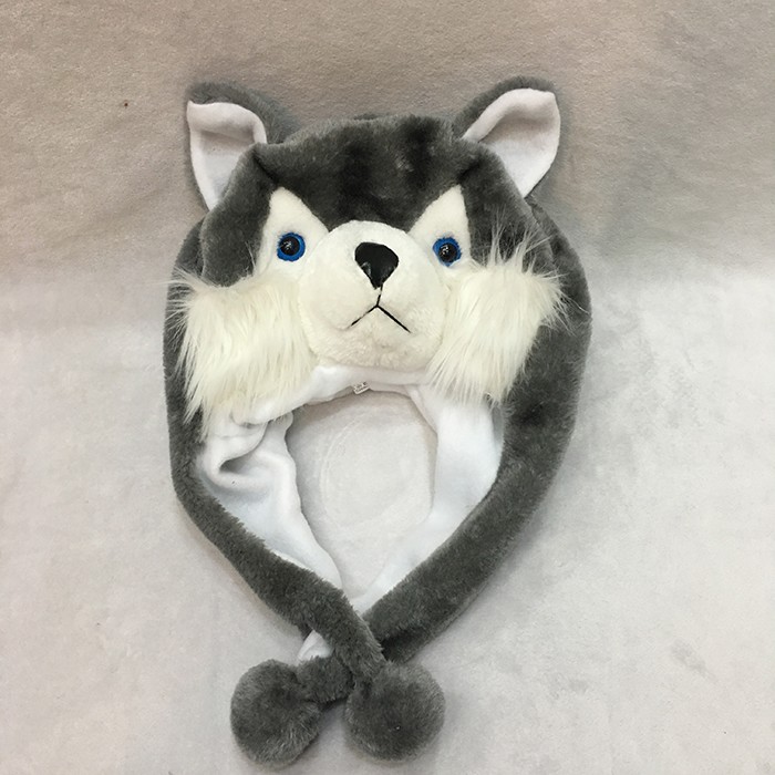 哈士奇大灰狼狗冬季卡通毛绒包头护耳表演COSPLAY帽子30X30CM