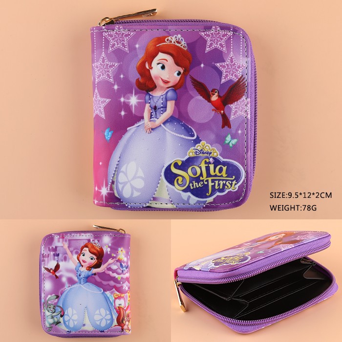 小公主索菲亚PU皮革彩色拉链短钱包A款