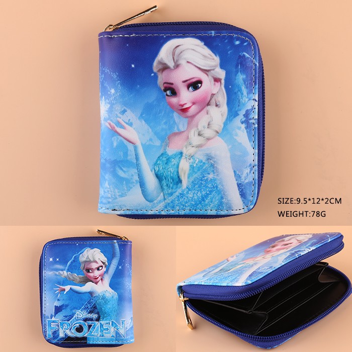 冰雪奇缘PU皮革彩色拉链短钱包B款