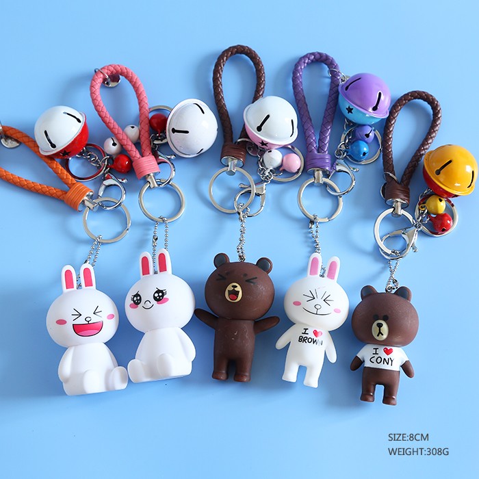 LINE TOWN 布朗熊和可妮兔带铃当6款一套钥匙扣挂件5套起批