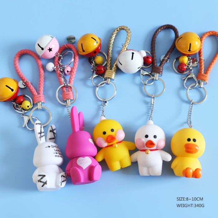 鸭子兔子带铃当5款一套钥匙扣挂件5套起批