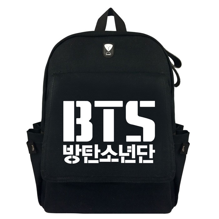BTS防弹少年团黑色加厚帆布双肩背包B款