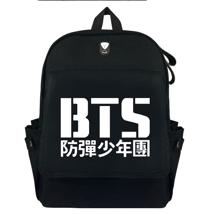 BTS防弹少年团黑色加厚帆布双肩背包B款