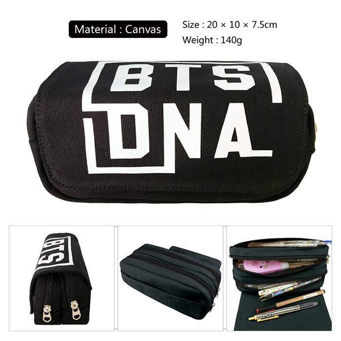 BTS字母标志帆布多功能双层拉链翻盖钱包笔袋