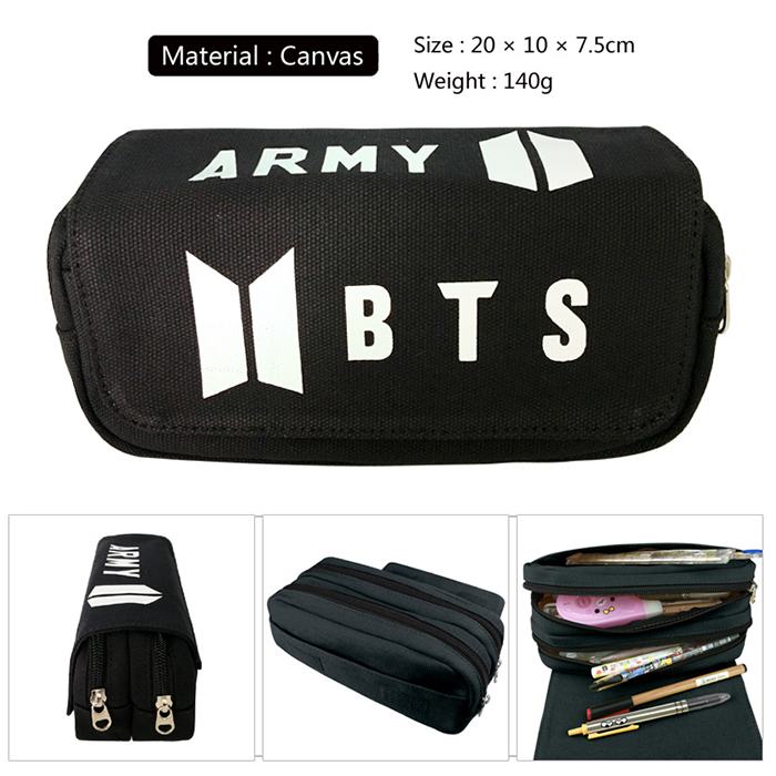 BTS标志帆布多功能双层拉链翻盖钱包笔袋
