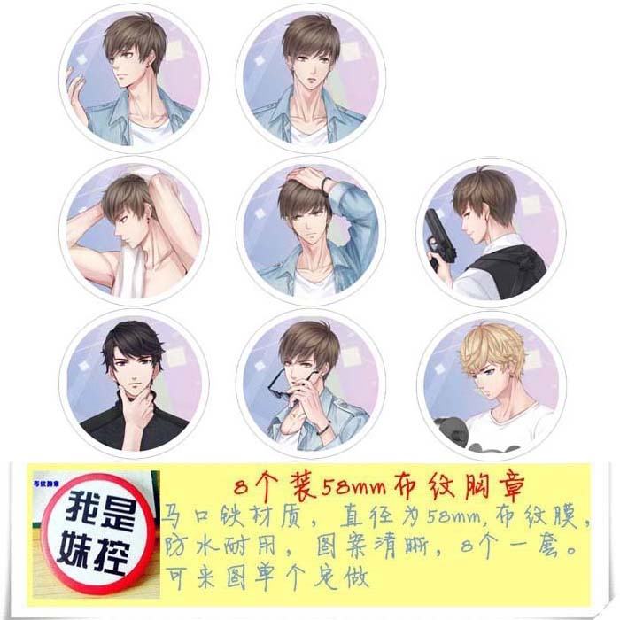 恋与制作人D款 8款一套圆形布纹胸针58MM