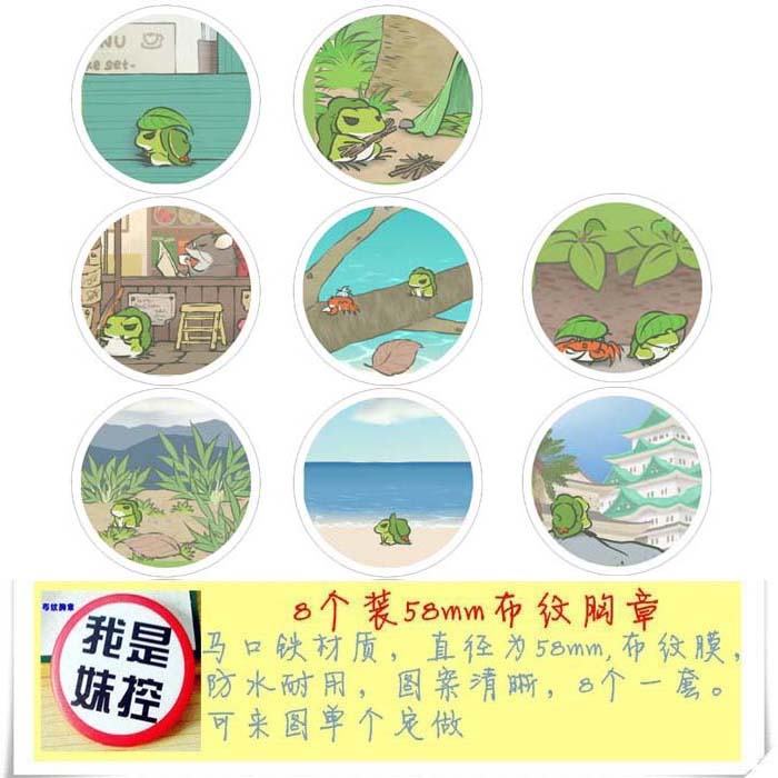 旅行青蛙B款 8款一套圆形布纹胸针58MM