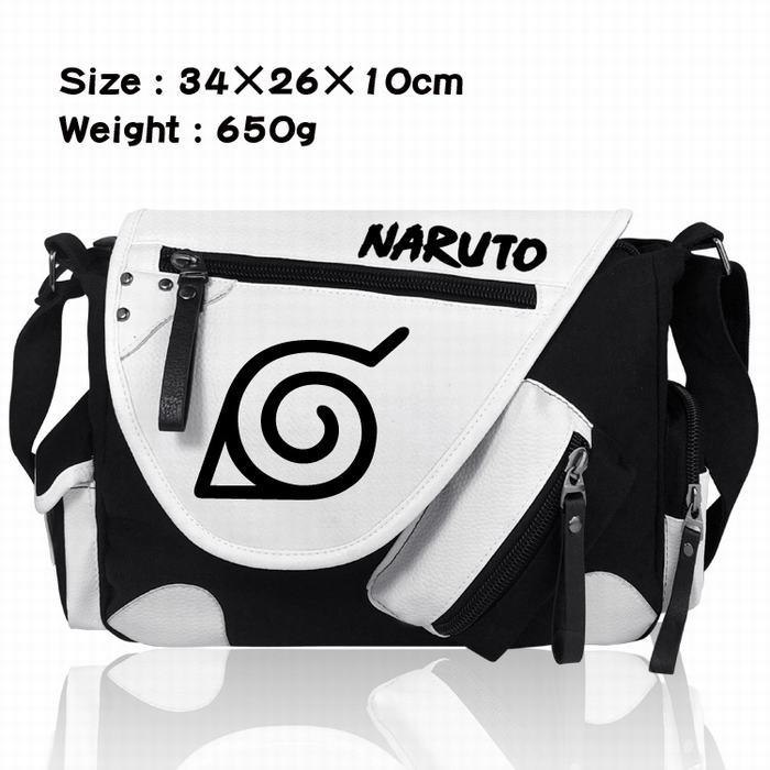 火影忍者木叶标志加厚PU皮帆布布拼色黑白挎包