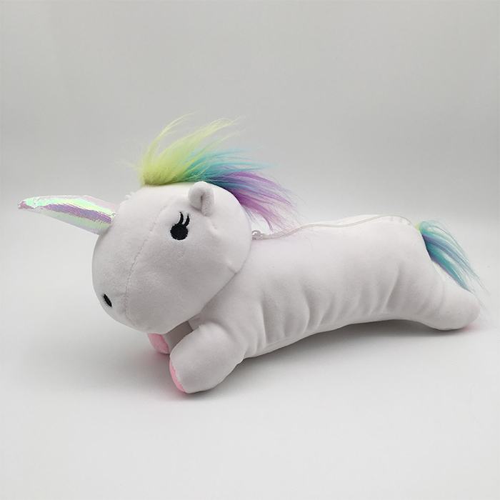独角兽彩色小马毛绒拉链笔袋白色30CM80克
