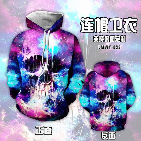 LMWY033个性骷髅全彩热转印健康布连帽套头卫衣提前三天订货S M L XL XXL XXXL